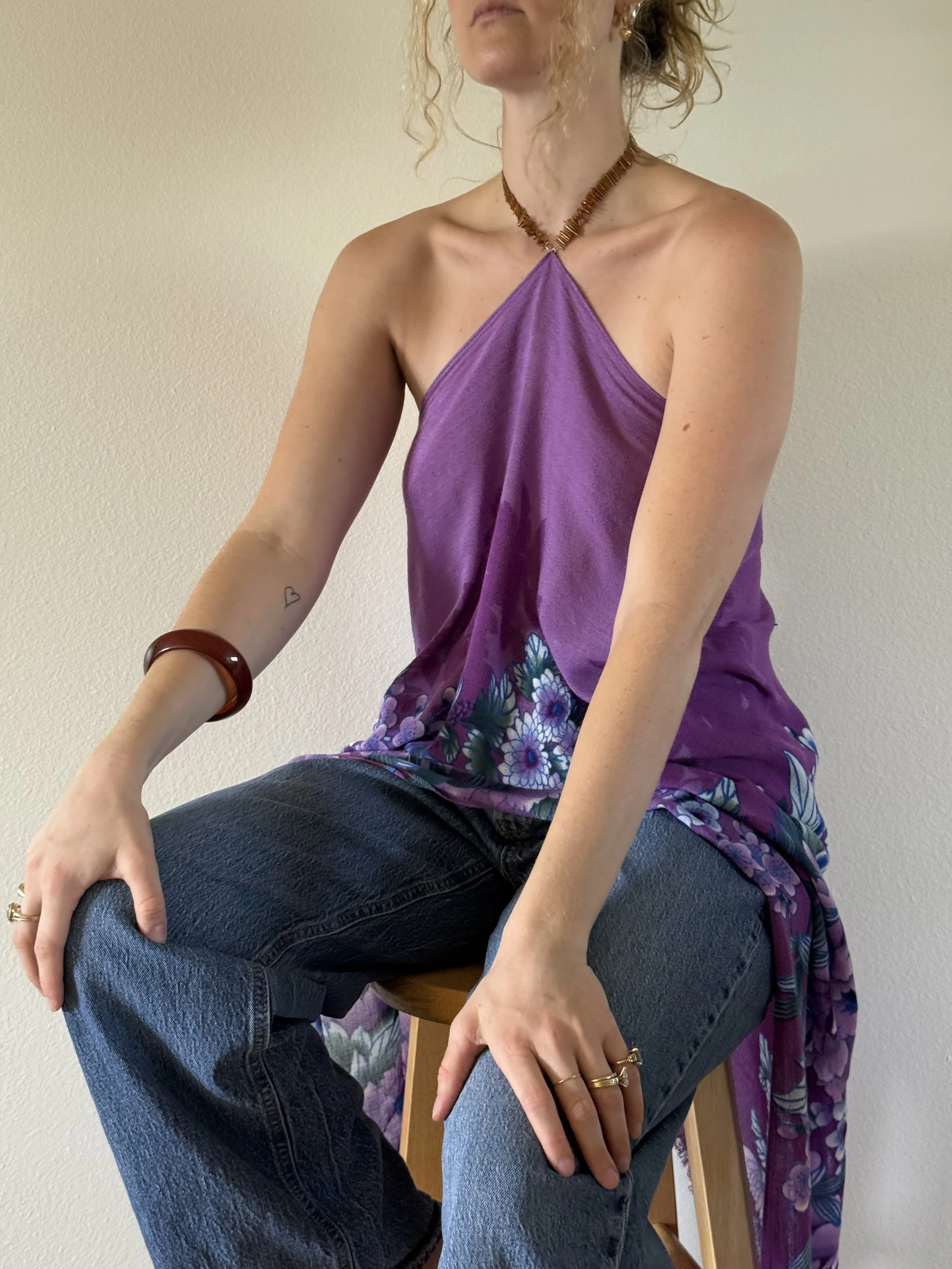 Pictures shown above: slinky scarves upcycled with locally sourced beads to form unique halter necklines.